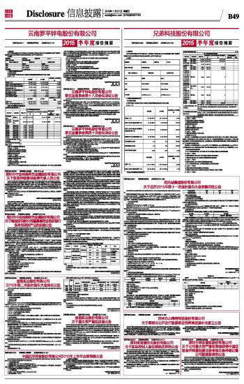 深圳市中金岭南有色金属股份有限公司公告(系列) 2015-07-31 来源:证券时报网 作者: