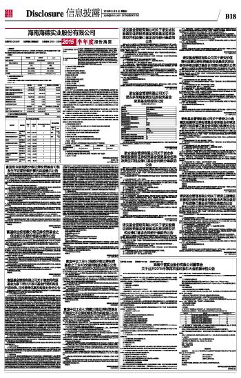海南海德实业股份有限公司2015半年度报告摘要