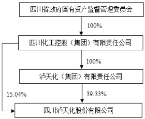 公司名称:四川泸天化股份有限公司 上市地点:深圳证券交易所 股票简称:*ST天化 股票代码:000912 信息披露义务人名称:四川化工控股(集团)有限责任公司 住 所:成都市高新区天府大道中段279号成达大厦6-9层 通讯地址:成都市高新区天府大道中段279号成达大厦 股份变动性质:股份减少 签署日期:2015年8月 信息披露义务人声明 一、本报告书为四川化工控股(集团)有限责任公司依据《证券法》、《收购办法》、《公开发行证券的公司信息披露内容与格式准则第15号—权益变动报告书》及相关法律、法规编写。 二、本信息披露义务人签署本报告书已获得必要的授权和批准,其履行亦不违反信息披露义务人章程或内部规则中的任何条款,或与之相冲突。 三、依据《中华人民共和国证券法》、《上市公司收购管理办法》的规定,本报告书已全面披露了本信息披露义务人在四川泸天化股份有限公司拥有权益的情况。 截止本报告书签署之日,除本报告书披露的持股信息外,本信息披露义务人没有通过任何其他方式增加或减少其在四川泸天化股份有限公司中拥有权益的股份。 四、本次划转尚需国务院国有资产监督管理委员会批准,及中国证券监督管理委员会审核无异议、并豁免收购人要约收购义务。 第一节 释 义 除非特定说明,以下简称在本报告中有如下含义: ■ 除特别说明外所有数值保留2位小数,若出现各分项数值之和与总数尾数不符的情况,均为四舍五入原因造成。 第二节 信息披露义务人介绍 一、四川化工基本情况 ■ 二、四川化工董事、监事、高级管理人员简要介绍 ■ 三、四川化工持有、控制其他上市公司5%以上发行在外股份情况 截至本报告书签署之日,四川化工直接持有川化股份无限售流通股14,350万股,占川化股份总股本的比例为30.53%,为川化股份控股股东。 2015年1月,四川化工与川化集团签署《国有股份无偿划转意向协议》和《股份委托管理协议》,四川化工拟将其持有的川化股份14,350万股国有股份无偿划转给川化集团,自协议生效之日起至该股份完成过户登记之前,四川化工将该股份除收益权、处置权以外的其他股东权利委托给川化集团行使。 2015年3月,四川化工与四川省能源投资集团有限责任公司签署《托管协议》,四川化工将其拥有的川化集团管理权委托给四川省能源投资集团有限责任公司行使。 除持有上述股份外,四川化工未持有、控制其他上市公司5%以上发行在外股份。 第三节 权益变动目的 四川化工通过国有股权无偿划转方式,解决泸天化与川化股份两家上市公司之间存在的同业竞争和关联交易;泸天化集团拟优化资源配置,促进泸天化产业转型升级和可持续发展。 截至本报告书签署之日,信息披露义务人直接持有泸天化8,800万股,占其总股本的15.04%,并通过全资子公司泸天化集团间接持有泸天化23,010万股股份,占其总股本的39.33%。 2015年7月四川化工与泸州市人民政府签署协议,四川化工将其持有的泸天化集团100%股权划转给泸州市人民政府,泸州市人民政府授权泸州市国资委对泸天化集团履行出资人职责。截至本报告书出具之日,泸天化集团100%股权划转协议的生效条件尚未成就,尚在履行相关程序。泸州市国资委对泸天化集团履行出资人职责后,通过泸天化集团控制泸天化,为泸天化实际控制人。届时,川化股份不再为泸天化的关联方。 第四节 权益变动方式 一、信息披露义务人持有、控制泸天化的情况 本次划转前,信息披露义务人直接持有泸天化8,800万股股份,占总股本的15.04%,并通过全资子公司泸天化集团间接持有泸天化23,010万股股份,占总股本的39.33%。 ■ 二、本次权益变动的基本情况 本次权益变动后,泸天化集团将持有泸天化31,810万股股份,占总股本的54.38%,为泸天化控股股东,泸天化的控制关系如下图: ■ 2015年7月四川化工与泸州市人民政府签署协议,四川化工将其持有的泸天化集团100%股权划转给泸州市人民政府,泸州市人民政府授权泸州市国资委对泸天化集团履行出资人职责。泸州市国资委对泸天化集团履行出资职责后,泸天化的控制关系如下图: ■ 三、无偿划转协议的主要内容 1、协议转让当事人 划出方:四川化工控股(集团)有限责任公司 划入方:泸天化(集团)有限责任公司 2、转让股份种类:无限售条件股; 3、划转股份数量:8,800万股; 4、划转股份占上市公司权益比例:占上市公司总股本15.04%; 5、股份性质及性质变动情况:国有法人股,本次划转完成前后,划转的股份性质不发生变化; 6、转让价款与支付安排:本次划转为无偿划转,不涉及价款支付; 7、协议签订时间:2015年8月10日 8、生效时间及条件: 《无偿划转协议》在下述条件全部得到满足之日起生效: ①国务院国资委批准本次划转; ②中国证监会豁免本次划转泸天化集团涉及的要约收购义务。 四、本次权益变动涉及标的股份权利限制说明 截至本报告书签署之日,四川化工持有的泸天化8,800万股已质押给泸州市工业投资集团有限公司。泸州市工业投资集团有限公司已出具书面文件同意本次划转安排并承诺配合四川化工在中国证券登记结算有限责任公司深圳分公司办理本次划转股份过户登记给泸天化集团的相关手续(包括但不限于中国证券登记结算有限责任公司深圳分公司要求办理本次划转股份过户登记手续之前解除本次划转股份的质押登记)。 除上述情况外,四