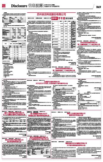 苏州安洁科技股份有限公司2015半年度报告摘要 2015-08-20 来源:证券时报网 作者: