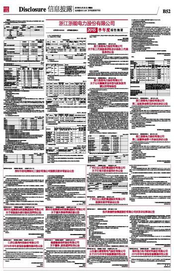 浙江浙能电力股份有限公司2015半年度报告摘要