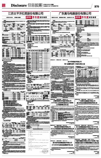 江苏太平洋石英股份有限公司2015半年度报告摘要