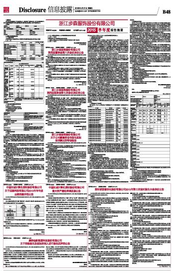 | 浙江步森服饰股份有限公司2015半年度报告摘要 | 2015-08-21 |