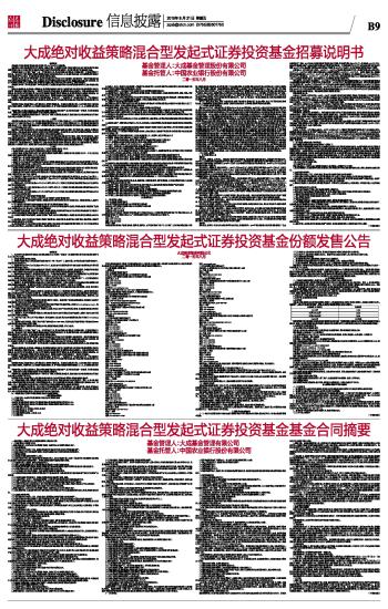 大成绝对收益策略混合型发起式证券投资基金份额发售公告 2015-08-21 来源:证券时报网 作者: