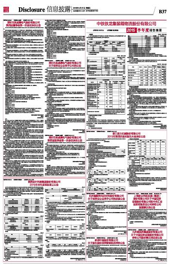 中铁铁龙集装箱物流股份有限公司2015半年度报告摘要