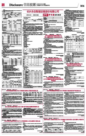 杭州永创智能设备股份有限公司2015半年度报告摘要