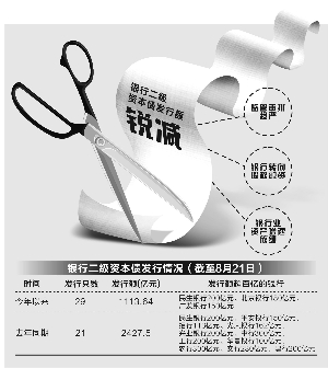 受监管审批趋严、银行转向股权融资、银行业资产增速放缓等因素影响 今年银行二级资本债发行额锐减过半 2015-08-24 来源:证券时报网 作者:马传茂