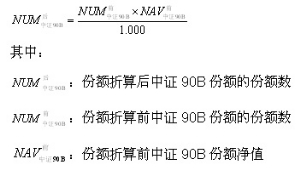 ■ 银华90份额的场外份额经折算后的份额数保留到小数点后两位,小数点后两位以后的部分舍去,舍去部分所代表的资产归基金所有;银华90份额的场内份额经折算后的份额数保留至整数位(最小单位为1 份),小数点以后的部分舍去,舍去部分所代表的资产归基金所有。 例、某投资人持有银华90份额、中证90A份额、中证90B份额各10,000份,在本基金的不定期份额折算日,三类份额的基金份额净值如下表所示,折算后,银华90份额、中证90A份额、中证90B份额基金份额净值均调整为1.000元。 ■ 四、基金份额折算期间的基金业务办理 (一)不定期份额折算基准日(即2015年8月25日),本基金暂停办理申购(含定期定额投资,下同)、赎回、转托管、配对转换业务;中证90A份额、中证90B份额于2015年8月25日上午9:30-10:30停牌一小时,并将于2015年8月25日10:30之后恢复交易。当日晚间,基金管理人计算当日基金份额净值及份额折算比例。 (二)不定期份额折算基准日后的第一个工作日(即2015年8月26日),本基金暂停办理申购、赎回、转托管、配对转换业务,中证90A份额、中证90B份额暂停交易。当日,本基金注册登记人及基金管理人为持有人办理份额登记确认。 (三)不定期份额折算基准日后的第二个工作日(即2015年8月27日),基金管理人将公告份额折算确认结果,持有人可以查询其账户内的基金份额。当日,本基金恢复办理申购、赎回、转托管、配对转换业务,中证90A份额、中证90B份额于2015年8月27日上午9:30-10:30停牌一小时,并将于2015年8月27日10:30之后恢复交易。 (四)根据根据《深圳证券交易所证券投资基金交易和申购赎回实施细则》,2015年8月27日中证90A份额、中证90B份额即时行情显示的前收盘价为2015年8月26日的中证90A份额、中证90B份额的份额参考净值(四舍五入至0.001元)。由于中证90A份额、中证90B份额在折算前存在折溢价交易情形,2015年8月27日当日中证90A份额和中证90B份额均可能出现交易价格大幅波动的情形。敬请投资者注意投资风险。 五、重要提示 1、本基金中证90A份额、中证90B份额将于2015年8月25日上午9:30-10:30停牌一小时,并于2015年8月25日上午10:30之后复牌。 2、本基金中证90A份额表现为低风险、收益相对稳定的特征,但在不定期份额折算后中证90A份额持有人的风险收益特征将发生较大变化,由持有单一的较低风险收益特征的中证90A份额变为同时持有较低风险收益特征的中证90A份额与较高风险收益特征的银华90份额,因此原中证90A份额持有人预期收益实现的不确定性将会增加;此外,银华90份额为跟踪中证等权重90指数的基础份额,其份额净值将随市场涨跌而变化,因此原中证90A份额持有人还可能会承担因市场下跌而遭受损失的风险。 3、本基金中证90B份额表现为高风险、高收益的特征,不定期份额折算后其杠杆倍数将大幅降低,将恢复到初始的2倍杠杆水平,相应地,中证90B份额参考净值随市场涨跌而增长或者下降的幅度也会大幅减小。 4、由于中证90A份额、中证90B份额折算前可能存在折溢价交易情形,不定期份额折算后,中证90A份额、中证90B份额的折溢价率可能发生较大变化。特提请参与二级市场交易的投资者注意折溢价变化所带来的风险。 5、根据深圳证券交易所的相关业务规则,中证90A份额、中证90B份额、银华90份额的场内份额经折算后的份额数均取整计算(最小单位为1份),舍去部分计入基金财产,因此持有极小数量中证90A份额、中证90B份额和场内银华90份额的持有人,存在折算后份额因为不足1份而导致相应的资产被强制归入基金资产的风险。 6、中证90B份额折算基准日的份额参考净值与折算阈值0.250元可能有一定差异。 7、基金管理人承诺以诚实信用、勤勉尽责的原则管理和运用基金资产,但不保证基金一定盈利,也不保证最低收益。投资者投资于本基金前应认真阅读本基金的基金合同和招募说明书等相关法律文件。敬请投资者注意投资风险。 特此公告。 银华基金管理有限公司 2015年8月25日