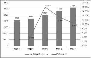 2010年至2014年我国冷轧板表观消费量