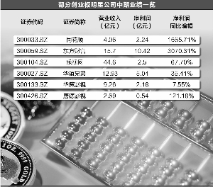 证券时报记者 周少杰 多事之秋的8月步入尾声,上市公司半年报披露工作随之进入密集期:逾130家创业板公司于26日披露中期业绩,同花顺、东方财富、乐视网、华谊兄弟等明星公司同日登台,争相斗艳。尽管股价走势让人惨不忍睹,但创业板明星公司的中期业绩却是颇为亮眼。 互联网金融一路高歌 东方财富是上半年创业板牛股之一,而公司业绩也异常夺目。半年报显示,东方财富上半年实现营业收入15.70亿元,比上年同期大幅增长684.39%,实现净利润10.42亿元,同比增长近31倍。 上半年股市热火朝天,东方财富互联网金融电子商务平台基金投资者规模和基金销售规模持续大幅增长,实现基金销售额4305.90亿元,金融电子商务服务业务收入同比增长1321.94%。同时,东方财富的金融数据服务业务收入和互联网广告服务业务收入同比也实现良好增长。 同时身处互联网金融的风口,同花顺上半年的业绩也毫不逊色。上半年,同花顺实现营业收入4.06亿元,较上年同期增长283.62%,实现净利润2.24亿元,同比大增16倍多。同花顺在半年报中也表示,上半年国内A股市场持续活跃,投资者对互联网金融信息服务的需求大幅增加,是公司收入增长的主因。 不过,值得投资者警惕的是,8月18日,证监会决定对同花顺进行立案调查。截至8月24日,同花顺尚未收到中国证监会的最终调查结论文件。若同花顺因此受到证监会行政处罚并且被认定构成重大违法行为,公司有可能触及退市条件而被暂停上市。 影视娱乐逆势而上 宏观经济不景气,但传媒娱乐板块业绩依旧亮眼,或许“口红效应”可以解释这一现象。 乐视网股价在上半年节节攀升,但也因此受到市场非议。尽管争议不断,但乐视网上半年实现营业收入44.6亿元,较去年同期增长51.79%,实现净利润2.5亿元,同比增长近七成。公司称,上半年网站的流量、覆盖人数等各项关键指标均稳健提升。 终端方面,乐视超级电视上半年销量(含订单)约100万台,并成功推出三款超级手机。在半年报中,乐视网称,随着后续乐视超级电视新品的推出,以及产能的持续提升,公司有信心及能力保障完成全年300万台以上的销量目标。 创业板“元老级”公司华谊兄弟上半年业绩仍维持较高增幅。半年报显示,华谊兄弟实现营业收入12.93亿元,较上年同期相比增长167.26%,净利润为5.04亿元,同比增长35.41%。上半年,华谊兄弟上映影片取得较好的票房收入,电影相关收入同比增长近六成,艺人经纪收入增长近八成,与此同时,公司互联网娱乐业务运行的3个游戏也取得较高收入。 影视股新秀唐德影视凭借电视剧《武媚娘传奇》更是大放异彩。半年报显示,唐德影视实现营业收入2.69亿元,同比增长153.67%,净利润5445.92万元,同比增长121.18%。其中,上半年电视剧业务实现收入2.19亿元,主要来源于电视剧《武媚娘传奇》首轮卫视追播、二轮、三轮及四轮卫视播映权,以及电视剧《左手劈刀》首轮卫视播映权转让收入。 相比之下,华策影视上半年业绩增长略显乏力。公司实现营业收入9.26亿元,比上年同期增长20.45%,归属上市公司股东净利润2.18亿元,比上年同期增长7.55%。不过,华策影视表示,公司重头戏在下半年,目标是进军国内民营一线电影公司之列。据半年报所言,华策影视上半年拿到了多部电影的独家发行权,下半年将迎来产品集中上映期,其中不乏近期热门影片,如《太平轮下》、《破风》、《刺客聂隐娘》等。 本版导读: