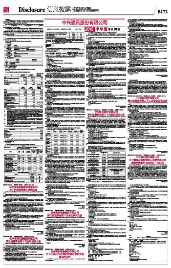 中兴通讯股份有限公司2015半年度报告摘要 2015-08-27 来源:证券时报网 作者: