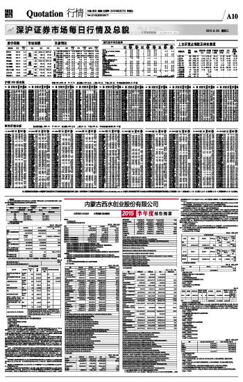 内蒙古西水创业股份有限公司2015半年度报告摘要 2015-08-27 来源:证券时报网 作者: