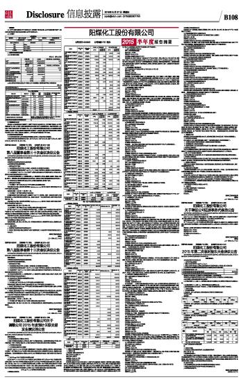 阳煤化工股份有限公司2015半年度报告摘要 2015-08-27 来源:证券时报网 作者:
