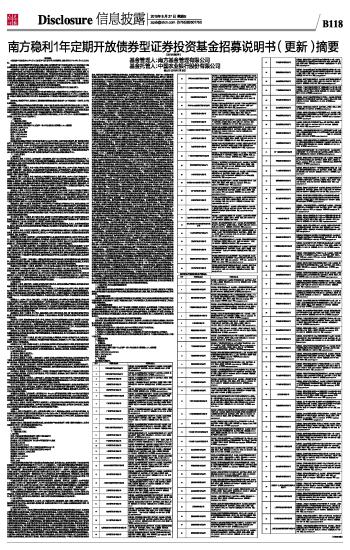 南方稳利1年定期开放债券型证券投资基金招募说明书(更新)摘要