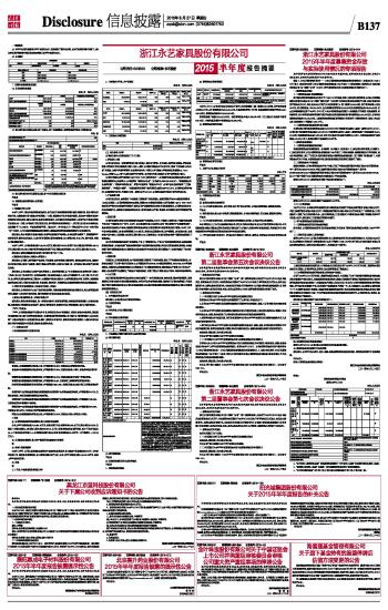 浙江永艺家具股份有限公司2015半年度报告摘要