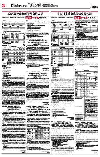 山东益生种畜禽股份有限公司2015半年度报告摘要