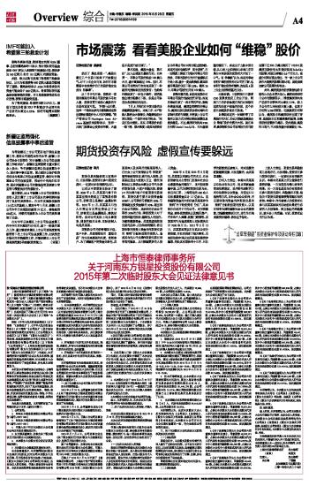 新疆证监局强化 信息披露事中事后监管 2015-08-28 来源:证券时报网 作者: