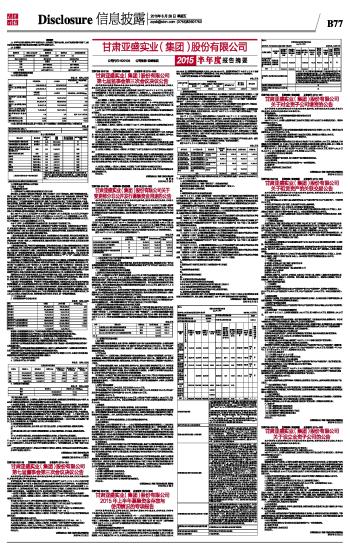 甘肃亚盛实业(集团)股份有限公司2015半年度报告摘要 2015-08-28 来源:证券时报网 作者: