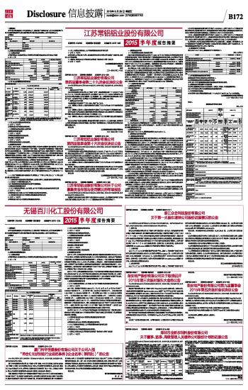 江苏常铝铝业股份有限公司2015半年度报告摘要