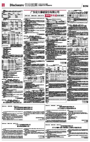 广东宏大爆破股份有限公司2015半年度报告摘要