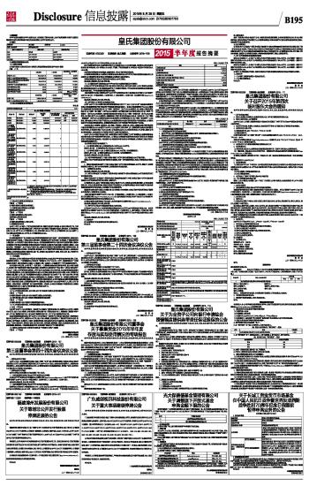 皇氏集团股份有限公司2015半年度报告摘要