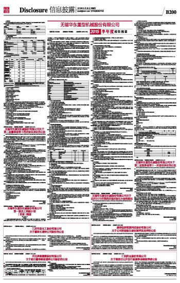 无锡华东重型机械股份有限公司2015半年度报告摘要