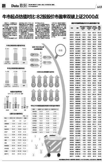 牛市起点估值对比:82股股价市盈率双破上证2000点