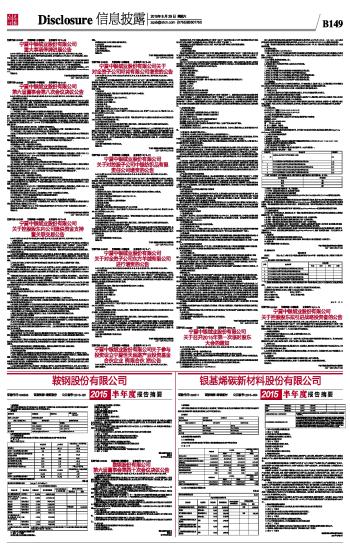 宁夏中银绒业股份有限公司公告(系列) 2015-08-29 来源:证券时报网 作者: