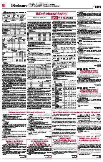 健康元药业集团股份有限公司2015半年度报告摘要 2015-08-29 来源:证券时报网 作者: