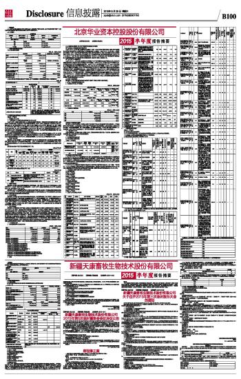 新疆天康畜牧生物技术股份有限公司2015半年度报告摘要 2015-08-29 来源:证券时报网 作者: