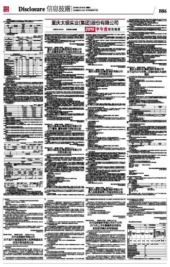 重庆太极实业(集团)股份有限公司2015半年度报告摘要 2015-08-29 来源:证券时报网 作者: