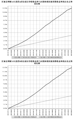 基金管理人:汇添富基金管理股份有限公司 基金托管人:中国农业银行股份有限公司 送出日期:2015年8月29日 §1 重要提示 1.1 重要提示 基金管理人的董事会、董事保证本报告所载资料不存在虚假记载、误导性陈述或重大遗漏,并对其内容的真实性、准确性和完整性承担个别及连带的法律责任。本半年度报告已经三分之二以上独立董事签字同意,并由董事长签发。 基金托管人中国农业银行股份有限公司根据本基金合同规定,于2015年8月27日复核了本报告中的财务指标、净值表现、利润分配情况、财务会计报告、投资组合报告等内容,保证复核内容不存在虚假记载、误导性陈述或者重大遗漏。 基金管理人承诺以诚实信用、勤勉尽责的原则管理和运用基金资产,但不保证基金一定盈利。 基金的过往业绩并不代表其未来表现。投资有风险,投资者在作出投资决策前应仔细阅读本基金的招募说明书及其更新。 本半年度报告摘要摘自半年度报告正文,投资者欲了解详细内容,应阅读半年度报告正文。 本报告中财务资料未经审计。 本报告期自2015年1月1日起至6月30日止。 §2 基金简介 2.1 基金基本情况 ■ 2.2 基金产品说明 ■ 2.3 基金管理人和基金托管人 ■ 2.4 信息披露方式 ■ §3 主要财务指标和基金净值表现 3.1 主要会计数据和财务指标 金额单位:人民币元 ■ 注:1、本期已实现收益指基金本期利息收入、投资收益、其他收入(不含公允价值变动收益)扣除相关费用后的余额,本期利润为本期已实现收益加上本期公允价值变动收益。 2、所述基金业绩指标不包括持有人认购或交易基金的各项费用(例如:基金的申购赎回费等),计入费用后实际收益水平要低于所列数字。 3.2 基金净值表现 3.2.1 基金份额净值收益率及其与同期业绩比较基准收益率的比较 汇添富理财14天债券A ■ 汇添富理财14天债券B ■ 注:1、本表净值收益率数据所取的基金运作周期为基金合同生效日为起始日的运作周期。 2、本基金每日计算当日收益并分配,并在运作期期末集中支付。 3、本基金的《基金合同》生效日为2012年7月10日,至本报告期末未满三年。 3.2.2 自基金合同生效以来基金累计净值收益率变动及其与同期业绩比较基准收益率变动的比较 ■ 注:本基金的《基金合同》生效日为2012年7月10日,截至本报告期末,基金成立未满三年;本基金建仓期为本《基金合同》生效之日(2012年7月10日)起两周,建仓结束时各项资产配置比例符合合同约定。 §4 管理人报告 4.1 基金管理人及基金经理情况 4.1.1 基金管理人及其管理基金的经验 汇添富基金管理股份有限公司由东方证券股份有限公司、文汇新民联合报业集团、东航金控有限责任公司共同发起设立,经中国证监会证监基金字(2005)5号文批准,于2005年2月3日正式成立,注册资本金为1亿元人民币。截止到2015年6月30日,公司管理证券投资基金规模约2,198.54亿元,有效客户数约600万户,资产管理规模在行业内名列前茅。公司管理53只开放式证券投资基金,形成了覆盖高、中、低各类风险收益特征,较为完善、有效的产品线,包括汇添富优势精选混合型证券投资基金、汇添富货币市场基金、汇添富均衡增长股票型证券投资基金、汇添富成长焦点股票型证券投资基金、汇添富增强收益债券型证券投资基金、汇添富蓝筹稳健灵活配置混合型证券投资基金、汇添富价值精选股票型证券投资基金、汇添富上证综合指数证券投资基金、汇添富策略回报股票型证券投资基金、汇添富民营活力股票型证券投资基金、汇添富香港优势股票型证券投资基金、汇添富医药保健股票型证券投资基金、汇添富双利债券型证券投资基金、汇添富社会责任股票型证券投资基金、汇添富可转换债券债券型证券投资基金、汇添富黄金及贵金属证券投资基金(LOF)、深证300交易型开放式指数证券投资基金、汇添富深证300交易型开放式指数证券投资基金联接基金、汇添富信用债债券型证券投资基金、汇添富逆向投资股票型证券投资基金、汇添富理财30天债券型证券投资基金、汇添富理财60天债券型证券投资基金、汇添富理财14天债券型证券投资基金、汇添富季季红定期开放债券型证券投资基金、汇添富多元收益债券型证券投资基金、汇添富收益快线货币市场基金、汇添富理财21天债券型发起式证券投资基金、汇添富消费行业股票型证券投资基金、汇添富理财7天债券型证券投资基金、汇添富实业债债券型证券投资基金、汇添富美丽30股票型证券投资基金、汇添富高息债债券型证券投资基金、汇添富中证主要消费交易型开放式指数证券投资基金、汇添富中证医药卫生交易型开放式指数证券投资基金、中证能源交易型开放式指数证券投资基金、中证金融地产交易型开放式指数证券投资基金、汇添富年年利定期开放债券型证券投资基金、汇添富现金宝货币市场基金、汇添富沪深300安中动态策略指数型证券投资基金、汇添富互利分级债券型证券投资基金、汇添富安心中国债券型证券投资基金、汇添富双利增强债券型证券投资基金、汇添富添富通货币市场基金、汇添富全额宝货币市场基金、汇添富恒生指数分级证券投资基金、汇添富和聚宝货币市场基金、汇添富移动互联股票型证券投资基金、汇添富环保行业股票型证券投资基金、汇添富收益快钱货币市场基金、汇添富外延增长主