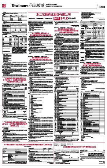浙江宏磊铜业股份有限公司2015半年度报告摘要