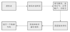 ■ 咨询电话:4008-058-058 附件3: 通过深圳市场交易报盘方式开通中国结算网络服务功能业务流程 投资者选择报盘认证方式开通中国结算网络服务功能,需设置并激活网络服务密码,主要流程如下: (一)网站注册 投资者登录中国结算网站(www.chinaclear.cn),点击右上角“注册”,进入投资者注册网页,填写姓名/名称、身份证明文件号码、深市证券账户号码、手机号码等信息,并自行设置网络用户名及网络服务密码。注册成功后,投资者网上填注的上述手机号将收到一个8位数字校验号码。图示如下: