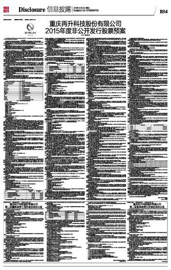 重庆再升科技股份有限公司2015年度非公开发行股票预案