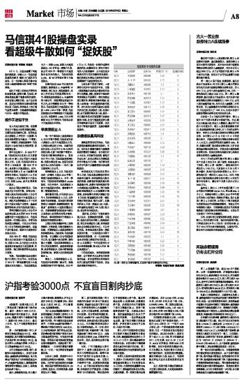 马信琪41股操盘实录看超级牛散如何“捉妖股” 2015-09-16 来源:证券时报网 作者:李雪峰 张骞爻