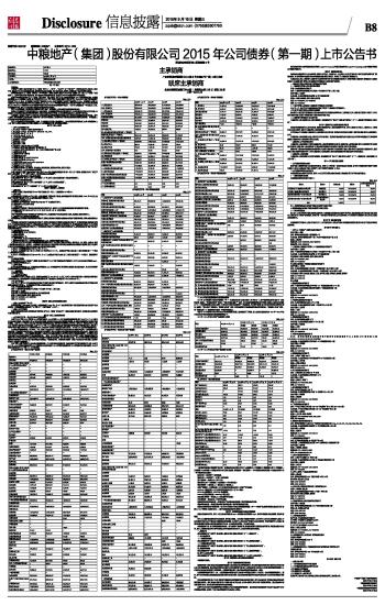 ■ 第一节 绪言 重要提示 中粮地产(集团)股份有限公司(以下简称“发行人”、“公司”、“本公司”或“中粮地产”)董事会成员已批准本上市公告书,确信其中不存在任何虚假记载、误导性陈述或重大遗漏,并对其真实性、准确性、完整性负个别的和连带的责任。 深圳证券交易所(以下简称“深交所”)对中粮地产(集团)股份有限公司2015年公司债券(第一期)(以下简称“本期债券”)上市申请及相关事项的审查,均不构成对本期债券的价值、收益及兑付作出实质性判断或任何保证。 经鹏元资信评估有限公司(以下简称“鹏元资信”)综合评定,发行人的主体信用评级为AA+,评级展望为稳定,本期债券评级为AA+;本期债券上市前,公司未经审计的2015年半年度合并财务报表口径净资产为106.95亿元,母公司财务报表口径净资产为61.76亿元,合并报表口径的资产负债率为78.42%,母公司报表口径的资产负债率为72.90%。本期债券上市前,公司最近三个会计年度实现的年均可分配利润为5.48亿元(2012年度追溯调整后的合并报表中归属于母公司所有者的净利润、2013年及2014年度经审计的合并报表中归属于母公司所有者的净利润平均值),不少于本期债券的一年利息的1.5倍。本期债券发行前,发行人在本次发行前的财务指标符合相关规定。 发行人在本期债券上市前的财务指标符合发行条件,本期债券上市交易场所是深圳证券交易所。 根据《公司债券发行与交易管理办法》的相关规定,本期债券仅面向合格投资者发行,公众投资者不得参与发行认购,本期债券上市后将被实施投资者适当性管理,仅限合格投资者参与交易,公众投资者认购或买入的交易行为无效。 本期债券上市前后,若发行人财务状况、经营业绩和信用评级等情况出现重大变化将影响本期债券双边挂牌交易。发行人承诺,若本期债券无法双边挂牌,债券持有人有权在本期债券上市前向本公司回售全部或部分债券认购份额。本期债券上市后的流动性风险敬请投资者关注。 发行人在向深交所申请本期债券上市时,已与债券受托管理人就债券终止上市的后续安排签署协议,如果本期债券终止上市,发行人将委托债券受托管理人提供终止上市后债券的托管、登记等相关服务。 第二节 发行人简介 一、发行人基本情况介绍 1、中文名称:中粮地产(集团)股份有限公司 2、英文名称:COFCO PROPERTY (GROUP) CO.,LTD. 3、成立时间:1983年2月24日 4、上市日期:1993年10月8日 5、上市交易所:深圳证券交易所 6、股票简称:中粮地产 7、股票代码:000031 8、法定代表人:周政 9、注册资本:1,813,731,596.00元人民币 10、注册地址:深圳市宝安区新城二区湖滨路5号 11、办公地址:深圳市福田区福华一路1号大中华国际交易广场35层 12、董事会秘书:崔捷 13、证券事务代表:范步登 14、邮政编码:518048 15、营业执照注册号:440301103197805 16、组织机构代码证:19224718-9 17、互联网网址:http://www.cofco-property.cn 18、联系电话:0755-23999288 19、联系传真:0755-23999009 20、经营范围:房地产开发经营、国内商业、物资供销业、建筑技术咨询、进出口贸易。 二、发行人设立、上市及历次股本变动情况 参见中粮地产(集团)股份有限公司公开发行2015年公司债券募集说明书(第一期)(以下简称:募集说明书)“第五节 发行人基本情况”之“二、发行人设立、上市及历次股本变动情况”。 三、公司股本情况及前十大股东持股情况 参见募集说明书“第五节 发行人基本情况”之“三、发行人股本总额及前十名股东持股情况”。 四、发行人主要业务基本情况 参见募集说明书“第五节 发行人基本情况”之“八、发行人主要业务情况”。 五、发行人的相关风险 参见募集说明书“第二节 风险因素”之“八、发行人的相关风险”。 第三节 债券发行、上市概况 一、债券名称 中粮地产(集团)股份有限公司2015年公司债券(第一期)。(债券简称:15中粮01) 二、发行总额 本期债券的发行总额为20亿元。其中,本期债券网下预设的发行数量占本期债券发行规模的比例为100%,即20亿元;最终网下实际发行数量为20亿元,占本期债券发行规模的100%。 三、债券发行批准机关文号 本期债券已由中国证监会“证监许可[2015]1887号”文核准公开发行。 四、债券的发行方式及发行对象 (一)发行方式 本期债券发行采取网下面向机构投资者询价配售的方式,由发行人与主承销商根据询价簿记情况进行配售。 本期债券的发行首日为2015年8月17日,已于2015年8月18日发行完毕。 (二)发行对象 持有中国证券登记结算有限责任公司深圳分公司A股证券账户的机构投资者(法律、法规禁止购买者除外)。 五、债券发行的主承销商及承销团成员 本期债券由主承销商中信证券股份有限公司、联席主承销商中国国际金融股份有限公司组织承销团,采取余额包销的方式承销。 本期债券主承销商为中信证券股份有限公司,联席主承销商为中国国际金融股份有限公司,分销商为国信证券股份有限公司、中信建投证券股份有限公司、华融证券股份有限公司、中国中投证券有限责任公司、海通证券股份有限公司、申万宏源证券有限公司、东北证券股份有限公司、广发证券股份有限公司、华泰联合证券有限责任公司、东海证券股份有限公司及东方花旗证券有限公司。 六、债券面额及发行价格 本期债券面值为100元,平价发行。 七、债券存续期限 本