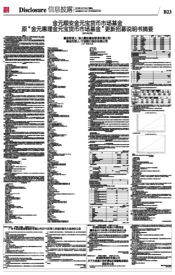金元顺安金元宝货币市场基金原“金元惠理金元宝货币市场基金”更新招募说明书摘要