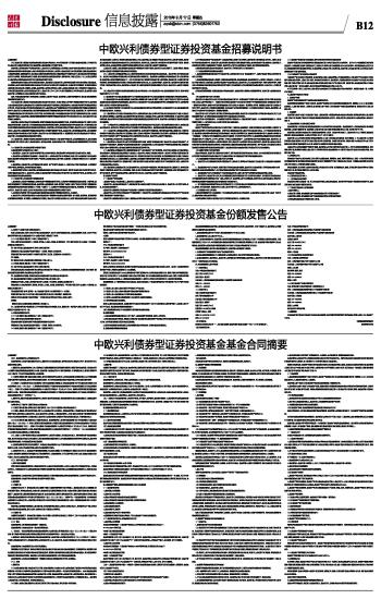 中欧兴利债券型证券投资基金基金合同摘要 2015-09-17 来源:证券时报网 作者: