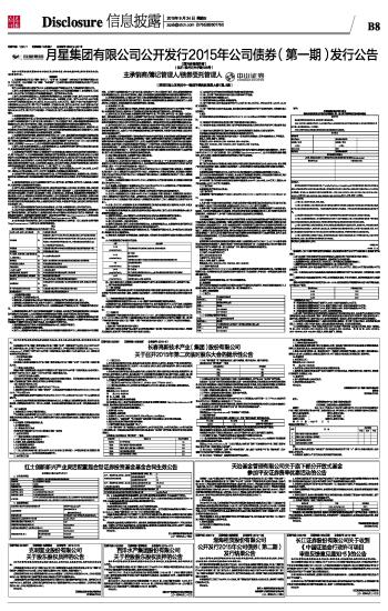 14、本公告仅对本期债券发行的有关事宜进行说明,不构成针对本期债券的任何投资建议。投资者欲详细了解本期债券情况,请仔细阅读《月星集团有限公司2015年面向合格投资者公开发行公司债券(第一期)募集说明书摘要》,该募集说明书摘要已披露于上海证券交易所网站(http://www.sse.com.cn)。有关本次发行的相关资料,投资者亦可到上海证券交易所网站(http://www.sse.com.cn)查询。