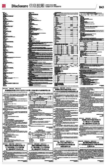 证券代码:002297 证券简称:博云新材 编号:2015-048 湖南博云新材料股份有限公司 关于参加2015年度投资者 网上集体接待日活动的公告 本公司及董事会全体成员保证公告内容真实、准确和完整,并对公告中的虚假记载、误导性陈述或者重大遗漏承担责任。 为进一步加强与投资者的互动交流工作,就2015年半年度报告事项及公司的生产经营及发展状况与投资者进行充分的沟通交流,湖南博云新材料股份有限公司(以下简称"公司")将参加由湖南省上市公司协会和深圳前海全景财经信息有限公司联合举办的"湖南辖区上市公司2015年度投资者网上集体接待日"活动,现将有关事项公告如下: 本次投资者网上集体接待日活动将在深圳前海全景财经信息有限公司提供的网上平台,采取远程方式进行,活动时间为2015年9月28日(星期一)下午15:00-17:00,投资者可以登陆"上市公司投资者关系互动平台(http://irm.p5w.net/)",参与公司本次网上投资者集体接待日活动。 届时公司副总裁兼董事会秘书易剑鸣先生及相关工作人员将通过网络在线交流形式和投资者进行沟通与交流。欢迎广大投资者参与。 特此公告。 湖南博云新材料股份有限公司 董事会 2015 年9 月24日 本版导读: