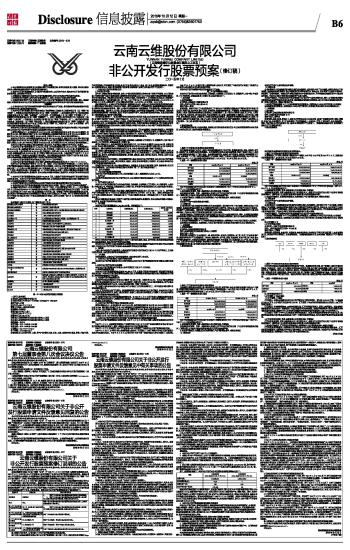 证券代码:600725 证券简称:云维股份 公告编号:2015-078 债券代码:122073 债券简称:11云维债 云南云维股份有限公司非公开发行股票预案(修订稿) 2015-10-12 来源:证券时报网 作者: