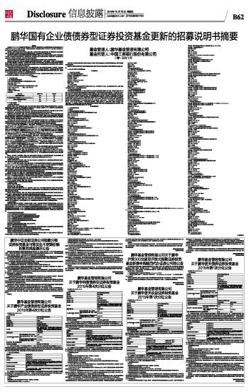 鹏华基金管理有限公司 关于鹏华普天债券证券投资基金 2015年第1次分红公告 公告送出日期:2015年10月16日 1 公告基本信息 ■ 注:1、根据基金合同规定,在符合有关基金分红条件的前提下,基金收益每年至少分配一次。2、根据相关业务规则,本基金份额持有人不能就红利再投资所转换的基金份额类型进行选择或选择无效,即本基金A类基金份额持有人选择红利再投资的本基金份额自动确定为A类;本基金B类基金份额持有人选择红利再投资的本基金份额自动确认为B类。上述业务规则发生变化的,本基金管理人将另行公告。3、因大额申购赎回等客观原因导致截至基准日按照基金合同约定的分红比例计算的应分配金额或每10份基金份额所分配金额等与本次分红相关事项不符的,本基金管理人可及时公告调整本次分红相关事项。 2 与分红相关的其他信息 ■ 注:1、权益登记日以后(含权益登记日)申购(包括转换转入)的本基金份额不享有本次分红权益,而权益登记日申请赎回(包括转换转出)的本基金份额享有本次分红权益。2、根据相关法律法规和基金合同约定本基金不再符合基金分红条件的,本基金管理人可另行刊登相关公告决定是否予以分红或变更分红方案,并依法履行相关程序。 3 其他需要提示的事项 咨询办法 基金份额持有人欲了解本基金其它有关信息,可采取如下方法咨询: 1、鹏华基金管理有限公司网站: www.phfund.com 2、鹏华基金管理有限公司客户服务热线:400-6788-999; 0755-82353668 3、鹏华基金管理有限公司直销网点及本基金各代销机构的相关网点(详见本基金更新招募说明书及相关公告)。 本基金投资者选择分红方式的重要提示 1、投资者办理本基金开户手续时选择的分红方式无效,必须另行独立办理一笔本基金分红方式选择的业务,方可设定符合投资者需求的本基金分红方式。投资者未单独办理分红方式选择业务或仅在办理本基金开户手续时选择分红方式的,按照本基金合同及中国证监会相关规定,视为选择现金分红方式。投资者托管于证券登记结算系统(即场内)的基金份额的分红方式只能是现金分红。 2、如投资者在多家销售机构购买了本基金,其在任一家销售机构所做的基金份额的分红方式变更,只适用于该销售机构指定交易账户下托管的基金份额。投资者未选择或未有效选择基金分红方式的,本基金的默认分红方式为现金分红。 3、请投资本基金的基金份额持有人于本次分红的权益登记日前务必致电基金管理人的客户服务热线人工坐席或登陆公司网站核实基金分红方式,本次分红最终确定的分红方式以基金管理人记录为准。若投资者向基金管理人核实的基金分红方式与投资人要求不符或与相关代销机构记录的投资者分红方式不符的,可在任意工作日到销售机构申请更改分红方式,最终分红方式以权益登记日之前(不含权益登记日)最后一次选择的分红方式为准。 风险提示 本基金分红并不因此提升或降低基金投资风险或投资收益。本公司承诺以诚实信用、勤勉尽责的原则管理和运用基金资产,但不保证基金一定盈利,也不保证最低收益。敬请投资人根据自身的风险承受能力选择相适应的基金产品进行投资,并注意投资风险。 鹏华基金管理有限公司 2015年10月16日 本版导读:
