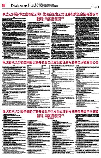 泰达宏利绝对收益策略定期开放混合型发起式证券投资基金基金合同摘要 2015-10-16 来源:证券时报网 作者: