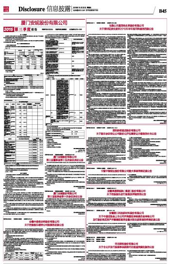 | 厦门安妮股份有限公司2015第三季度报告 | 2015-10-22 | |