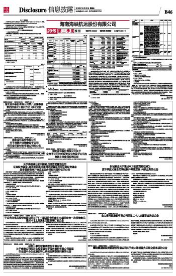 | 海南海峡航运股份有限公司2015第三季度报告 | 2015-10-22 | |