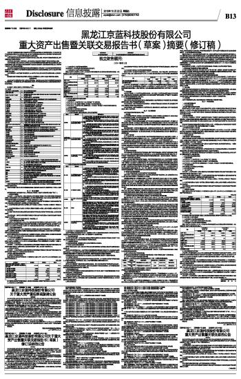 黑龙江京蓝科技股份有限公司重大资产出售暨关联交易报告书(草案)摘要(修订稿) 2015-10-22 来源:证券时报网 作者: