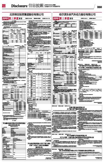 | 哈尔滨东安汽车动力股份有限公司2015第三季度报告 | 2015-10-24 | |