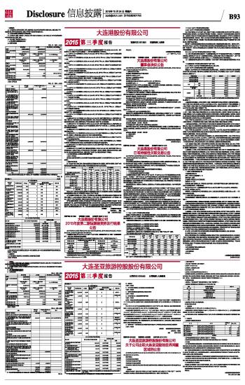 大连圣亚旅游控股股份有限公司2015第三季度报告