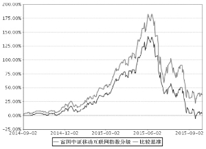 §1 重要提示 ■ §2 基金产品概况 ■ §3 主要财务指标和基金净值表现 3.1 主要财务指标 单位: 人民币元 ■ 注:上述基金业绩指标不包括持有人认购或交易基金的各项费用(例如,开放式基金的申购赎回费、基金转换费等),计入费用后实际收益水平要低于所列数字。本期已实现收益指基金本期利息收入、投资收益、其他收入(不含公允价值变动收益)扣除相关费用后的余额,本期利润为本期已实现收益加上本期公允价值变动收益。 3.2 基金净值表现 3.2.1 本报告期基金份额净值增长率及其与同期业绩比较基准收益率的比较 ■ 注:过去三个月指2015年7月1日-2015年9月30日 3.2.2 自基金合同生效以来基金累计份额净值增长率变动及其与同期业绩比较基准收益率变动的比较 ■ 注:1、截止日期为2015年9月30日。 2、本基金于2014年9月2日成立,建仓期6个月,即从2014年9月2日起至2015年3月1日,建仓期结束时各项资产配置比例均符合基金合同约定。 3.3 其他指标 ■ §4 管理人报告 4.1 基金经理(或基金经理小组)简介 ■ 注:1、上述任职日期为根据公司决定确定的聘任日期,离任日期为根据公司决定确定的解聘日期;首任基金经理任职日期为基金合同生效日。 2、证券从业的涵义遵从行业协会《证券业从业人员资格管理办法》的相关规定。 4.2 报告期内本基金运作遵规守信情况说明 本报告期,富国基金管理有限公司作为富国中证移动互联网指数分级证券投资基金的管理人严格按照《中华人民共和国证券投资基金法》、《中华人民共和国证券法》、《富国中证移动互联网指数分级证券投资基金基金合同》以及其它有关法律法规的规定,本着诚实信用、勤勉尽责的原则管理和运用基金资产,以尽可能减少和分散投资风险、确保基金资产的安全并谋求基金资产长期稳定的增长为目标,基金投资组合符合有关法规及基金合同的规定。 4.3 公平交易专项说明 4.3.1 公平交易制度的执行情况 本基金管理人根据相关法规要求,结合实际情况,制定了内部的《公平交易管理办法》,对证券的一级市场申购、二级市场交易相关的研究分析、投资决策、授权、交易执行、业绩评估等投资管理环节,实行事前控制、事中监控、事后评估及反馈的流程化管理。在制度、操作层面确保各组合享有同等信息知情权、均等交易机会,并保持各组合的独立投资决策权。 事前控制主要包括:1、一级市场,通过标准化的办公流程,对关联方审核、价格公允性判断及证券公平分配等相关环节进行控制;2、二级市场,通过交易系统的投资备选库、交易对手库及授权管理,对投资标的、交易对手和操作权限进行自动化控制。 事中监控主要包括组合间相同投资标的的交易方向、市场冲击的控制,银行间市场交易价格的公允性评估等。1、将主动投资组合的同日反向交易列为限制行为,非经特别控制流程审核同意,不得进行;对于同日同向交易,通过交易系统对组合间的交易公平性进行自动化处理。2、同一基金经理管理的不同组合,对同一投资标的采用相同投资策略的,必须通过交易系统采取同时、同价下达投资指令,确保公平对待其所管理的组合。 事后评估及反馈主要包括组合间同一投资标的的临近交易日的同向交易和反向交易的合理性分析评估,以及不同时间窗口下(1日、3日、5日)的季度公平性交易分析评估等。1、通过公平性交易的事后分析评估系统,对涉及公平性交易的投资行为进行分析评估,分析对象涵盖公募、年金、社保及专户产品,并重点分析同类组合(股票型、混合型、债券型)间、不同产品间以及同一基金经理管理不同组合间的交易行为,若发现异常交易行为,监察稽核部视情况要求相关当事人做出合理性解释,并按法规要求上报辖区监管机构。2、季度公平性交易分析报告按规定经基金经理或投资经理签字,并经督察长、总经理审阅签字后,归档保存,以备后查。 本报告期内公司旗下基金严格遵守公司的相关公平交易制度,未出现违反公平交易制度的情况。 4.3.2 异常交易行为的专项说明 本报告期内未发现异常交易行为。 公司旗下管理的各投资组合在交易所公开竞价同日反向交易的控制方面,报告期内本组合与其他投资组合之间,因组合流动性管理或投资策略调整需要,出现1次同日反向交易成交较少的单边交易量超过该证券当日成交量5%的情况。 4.4 报告期内基金的投资策略和运作分析 自6月中旬以来,随着市场资金去杠杆,同时伴随着人民币贬值等事件的出现,三季度A股出现一轮大幅调整行情。在此期间,以证金公司为代表的国家队积极救市,在一定程度上缓解了场外配资强平带来的流动性风险。从6月中旬的高点,到8月下旬的低点,上证综指、创业板指数等代表性指数跌幅分别超过40%、50%。进入9月,随着两融余额的快速下降和场外配资的清理进入尾声,同时从央行近期动作看,人民币继续贬值的风险大幅下降,市场经过充分调整之后迎来一些积极变化。从估值看,部分价值股估值已进入合理区间,部分高股息资产和银行股有了估值吸引力。虽然当前位置并非绝对底部,但风险已基本可控,有可操作性。当然,市场也很难再次出现类似上半年的快速上涨,经过此轮调整后,市场的资金供需、市场信心、估值体系、结构主线都需要寻找新的平衡和方向。总体来看,中证移动互联指数三季度下跌34.64%。 在投资管理上,